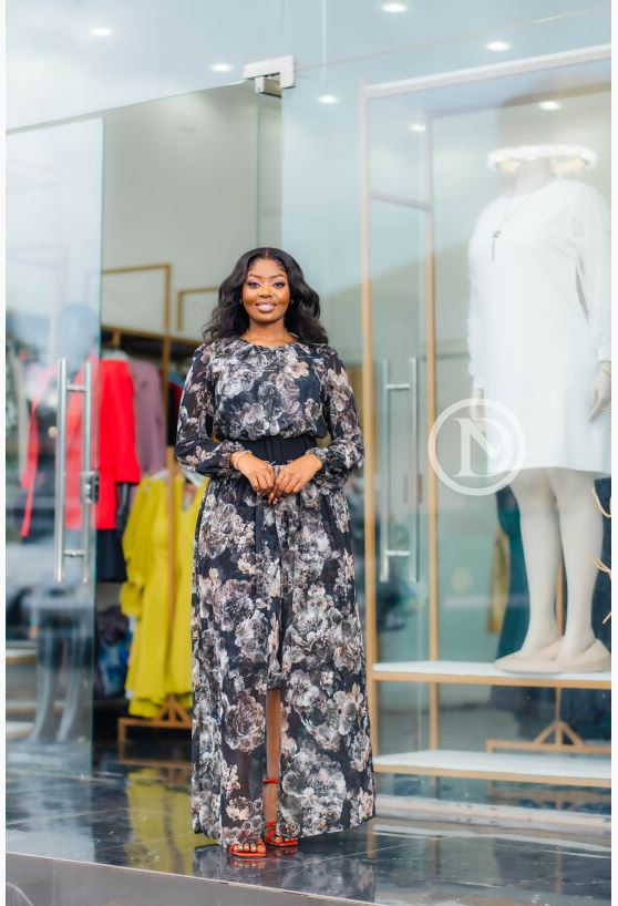 Elegant black floral maxi dress