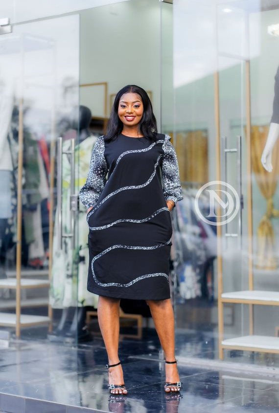 elegant ,three-quartered sleeve shift dress