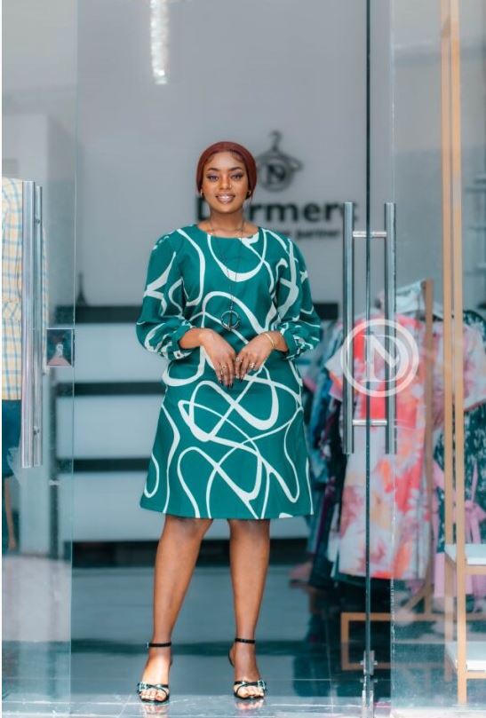 Elegant green with white shift dress