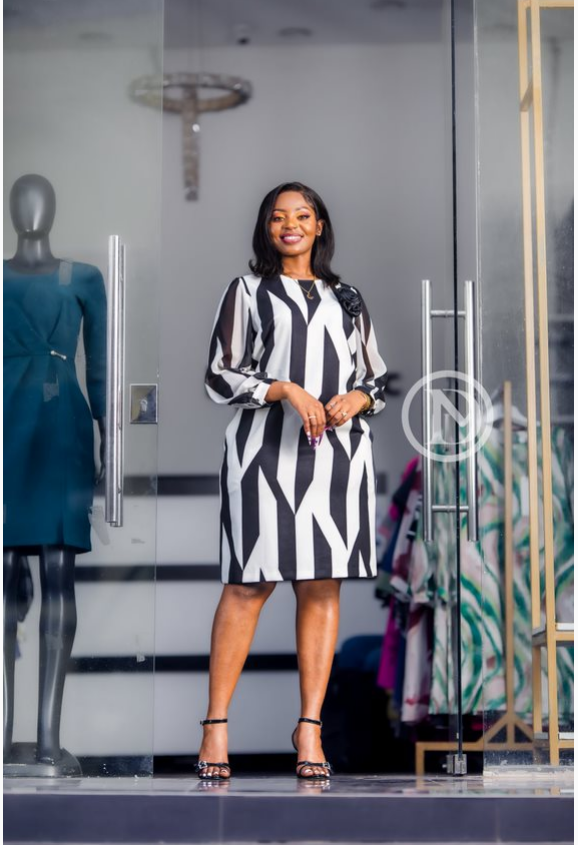 black and white patterned shift dress