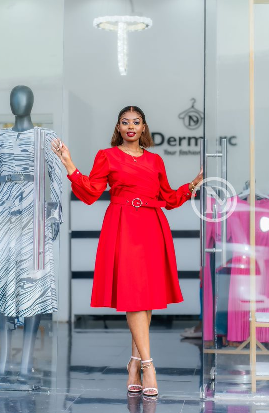 Elegant skater dress with belt and pockets