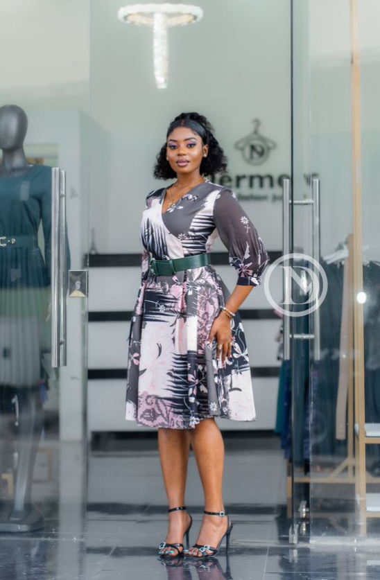 Elegant skater dress with belt and pockets