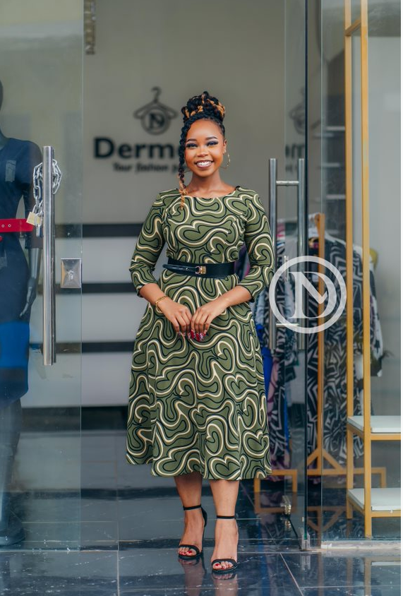 Elegant midi skater dress with a belt